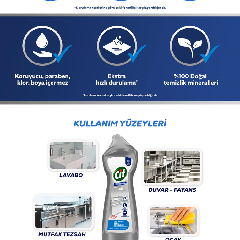 - Endüstriyel mutfaklarda gıda temizliği için geliştirilmiştir.