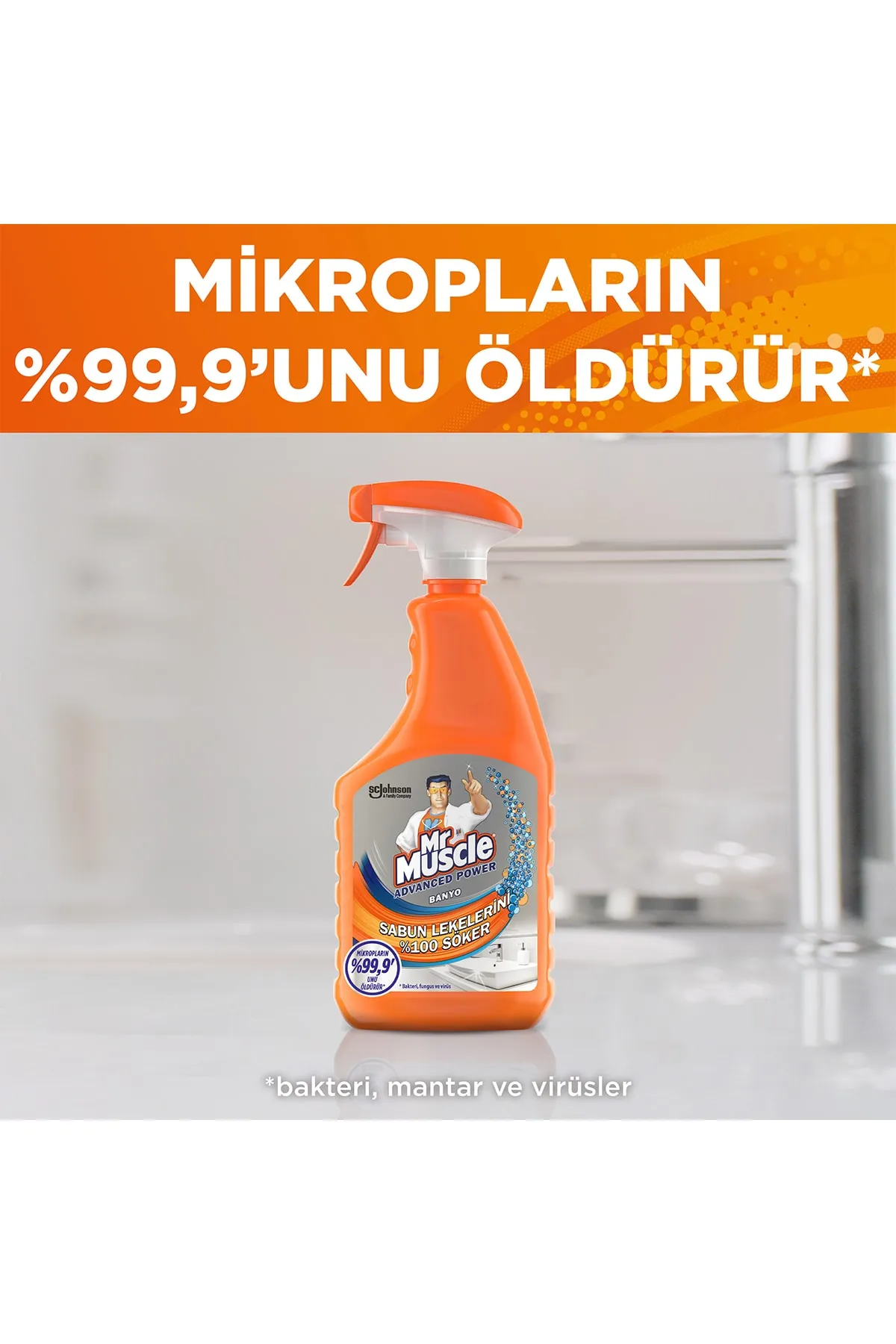 - Mr Muscle Advanced Power Banyo Temizleyici, güçlü yeni formülü, sabun artıklarının %100’ünü temizler, virüs ve bakterilerin %99,9’unu öldürür.
