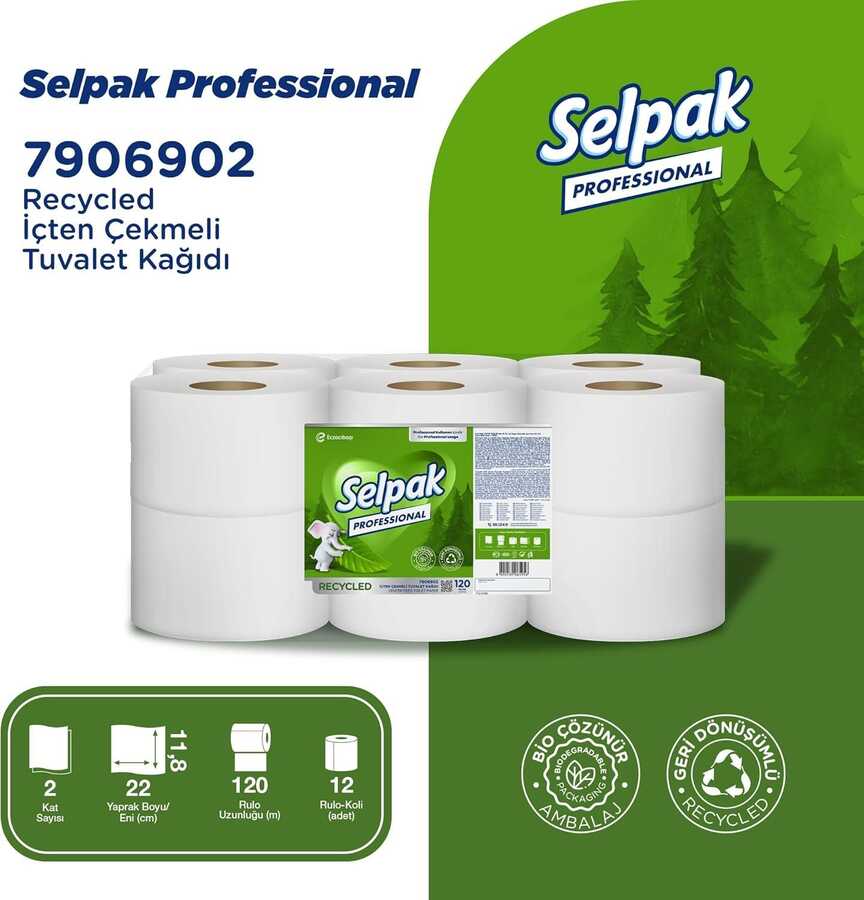 Selpak Tuvalet Kağıdı Professional Recyled İçten Çekmeli 120m 6 lı 7906902