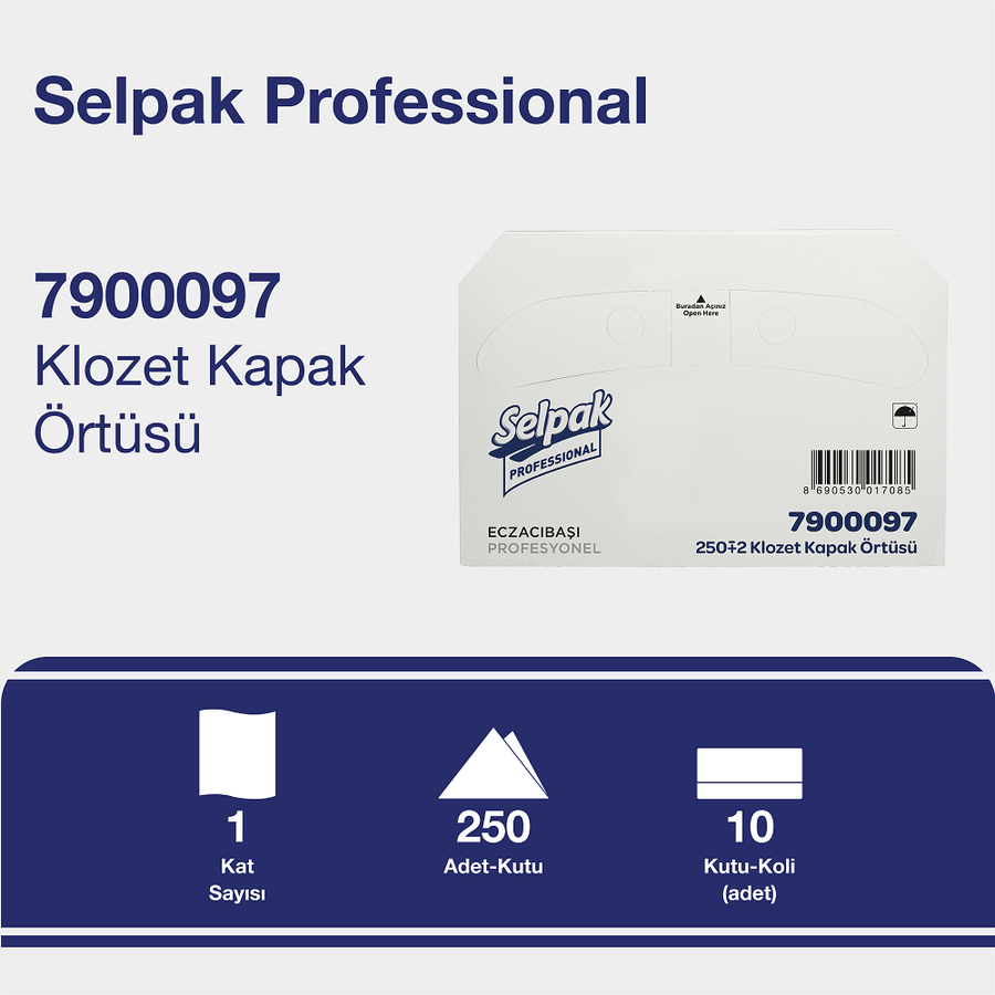 - Klozet kapağı kağıdından bir kutu içerisinde 250 adet, koli içerisinde 10 kutu ürün bulunmaktadır.