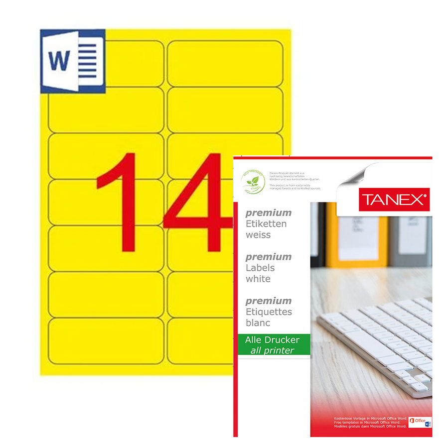 Tanex Etiket A4 Laser 99.1mmx38.1mm Sarı Tw-2014